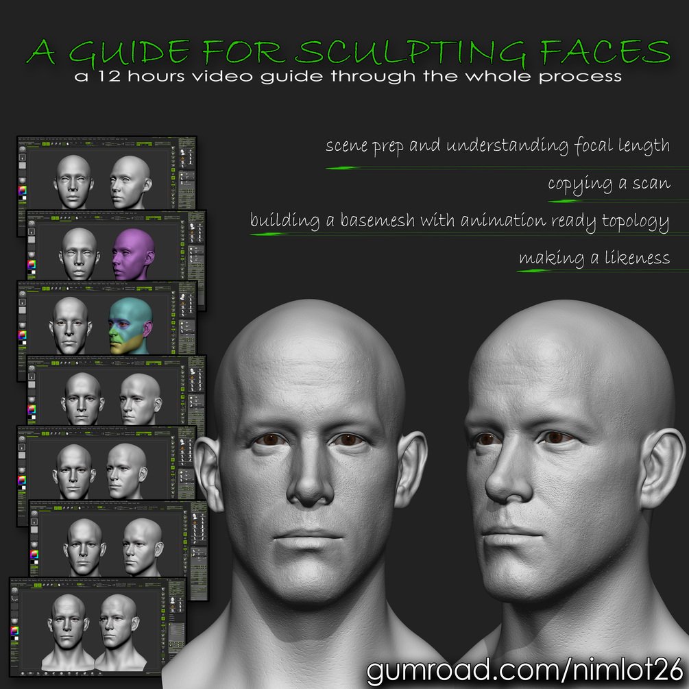 12h of explained videos about how to approach sculpting heads in Zbrush